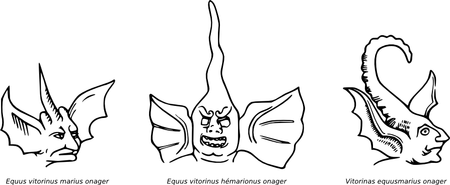 Diz-se do onagro de três patas que ele se encontra no início do oceano e que três é o número de seus cascos e seis o de seus olhos e nove o de suas bocas e dois o de suas orelhas e um o de seu corno. Sua pelagem é branca, seu alimento é espiritual e todo ele é justo. E dois dos seis olhos estão no lugar dos olhos e dois na ponta da cabeça e dois na nuca; com a agudeza dos seis olhos domina e destrói.